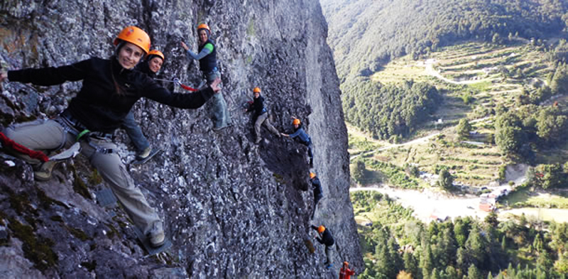 En Mineral del Chico los intrépidos amantes de las alturas y la adrenalina encontrarán muchas aventuras. La ruta Vía Ferrata será una experiencia inolvidable, pues en ella podrás ascender a una montaña de 200 metros de altura. En realidad, más que practicar la escalada, en esta experiencia caminarás prácticamente en el aire. Te encontrarás con pasamanos, grapas, cadenas y puentes colgantes que han sido ensamblados estratégicamente para indicar el trayecto hacia la cima. Es necesario el uso del arnés y de un cable de acero como seguridad adicional, en caso de algún paso en falso.