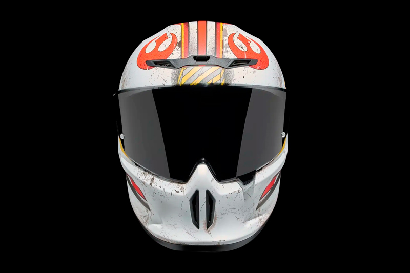 3. Rebel Pilot: Inspirado en el Rogue Squadron, este diseño presenta la insignia icónica de la Alianza Rebelde y un armazón blanco, rojo y naranja usado en combate. Es la elección definitiva para aquellos que desafían el lado oscuro de la carretera.