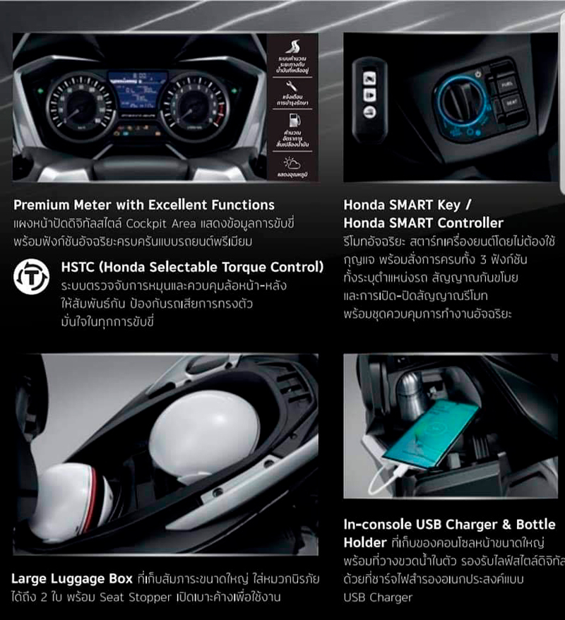 Los detalles de la Forza 300 que hacen nuestra vida mucho más fácil continúan en este modelo, tales como el control de selección de par motor de Honda (HSTC), el Smart Key (arranque sin llave), el puerto de conexión para cargar el celular, la iluminación full led, entre otros cómodos beneficios anteriormente vistos en la edición pasada.