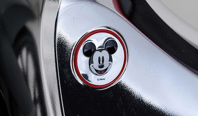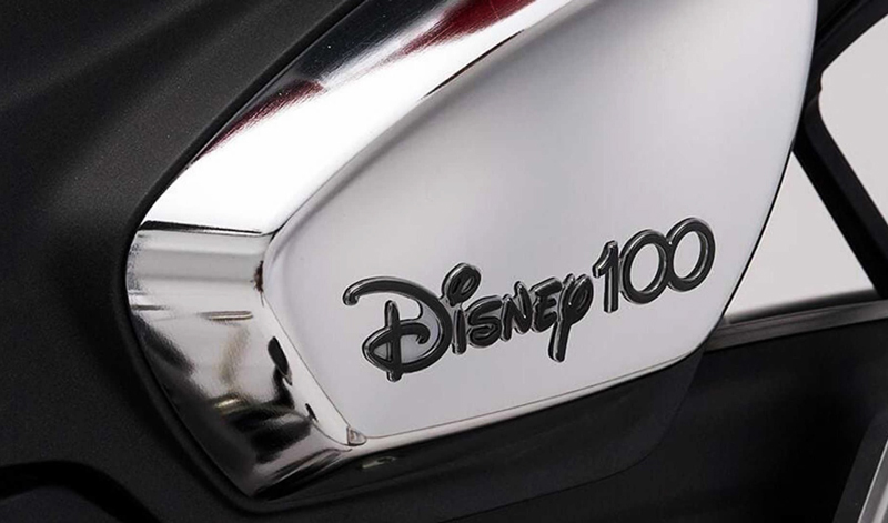 Esta edición limitada cuenta con algunos de sus componentes rematados en acabado cromo. También con un sillín con tapizado rojo, o el esquema de color presidido por una pintura en negro satinado. Además, se han incluido logotipos “100 Aniversario” en los carenados laterales, así como la silueta del famoso ratón de la compañía en uno de los extremos frontales.