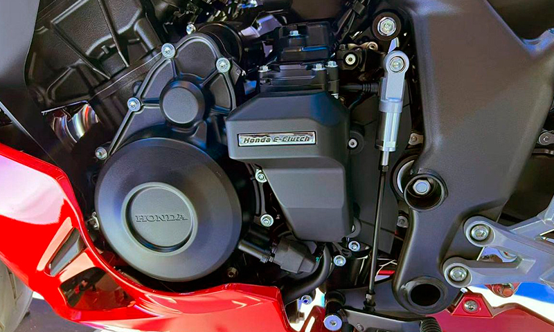 La CBR500R Four destaca por su nuevo motor tetracilíndrico de 502 cc, capaz de generar una potencia estimada cercana a los 80 caballos de fuerza, lo que la posiciona como una opción sumamente atractiva para quienes buscan una deportiva accesible, pero con carácter y prestaciones. Uno de los principales elementos diferenciadores de este nuevo modelo es la incorporación de la segunda generación del sistema de embrague electrónico Honda E-Clutch, ahora complementado con acelerador electrónico (ride-by-wire). A diferencia de los primeros modelos que utilizaban este sistema —como los de la gama 650—, en los que el embrague era manejado de forma más convencional, esta nueva versión permite que las reducciones se realicen automáticamente, mejorando la experiencia de conducción y reduciendo la intervención del piloto en maniobras cotidianas.