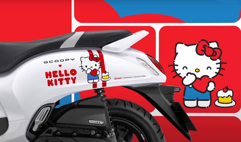 Honda Tailandia ha lanzado una edición especial limitada del scooter Honda SH Mode 125 para conmemorar el 50 aniversario de Hello Kitty. Esta versión, conocida localmente como Honda Scoopy, presenta un diseño exclusivo con la famosa figura de Hello Kitty decorando el scooter en colores blanco y rojo.