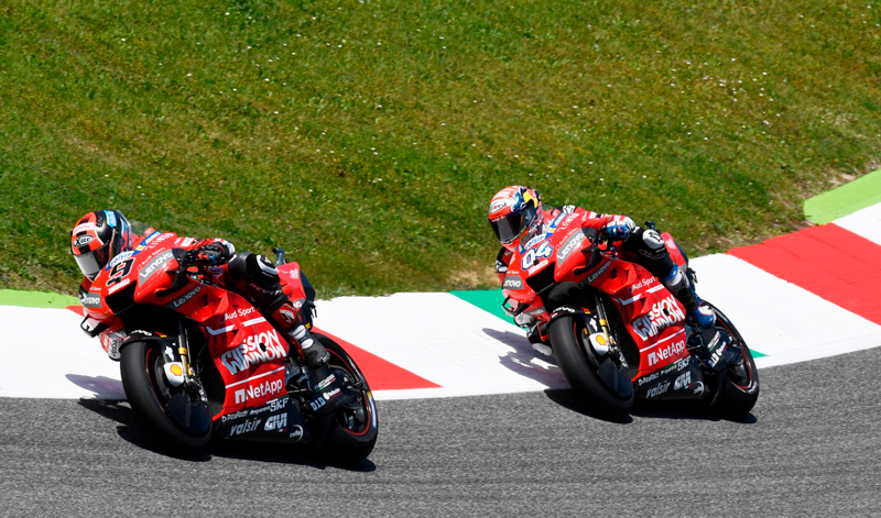 El Mission Winnow Ducati ha vivido un domingo para enmarcar en el Autódromo Internacional del Mugello. Danilo Petrucci ganó el Gran Premio de Italia, su primera victoria en MotoGP, y Andrea Dovizioso consiguió la tercera posición, a solo tres décimas. Para Ducati esta es la tercera victoria consecutiva en el GP de casa, tras la de Dovizioso en 2017 y la de Jorge Lorenzo en 2018. Un resultado extraordinario y celebrado por los numerosos aficionados que han llenado la tribuna Ducati.