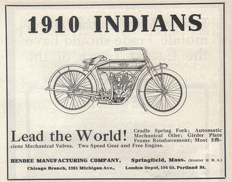 En 1897 el norteamericano George M. Hendee fundó una compañía de fabricación de bicicletas llamada Hendee Manufacturing Company en Springfield, Massachusetts. Las motocicletas tenían nombres como Silver King, Silver Queen y American Indian, que se simplificaron a Indian, y se volvió la principal marca de Hendee, ya que el nombre le daba una distinción única.