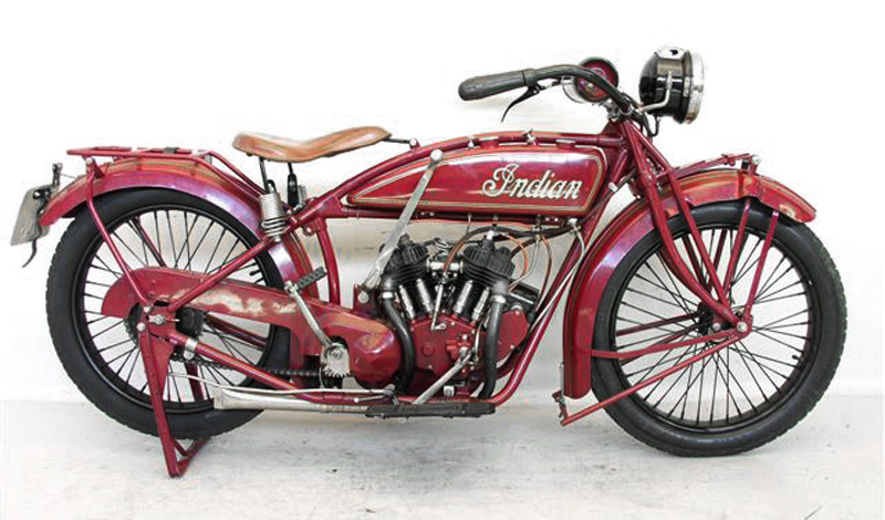 El año de1913 fue muy productivo en la historia de Indian, ya que la marca introdujo el diseño de suspensión trasera con brazo móvil, llamado marco con cuna y resorte. Se incluyó en todos los modelos de ese año y se pintaron de color Indian Red. Oscar Hedstrom, uno de los socios originales de la compañía, e impulsor de la innovadora ingeniería de Indian Motorcycle, se retiró el 1 de marzo. Pero además fue un año con ventas récord, ya que se vendieron 32,000 unidades.