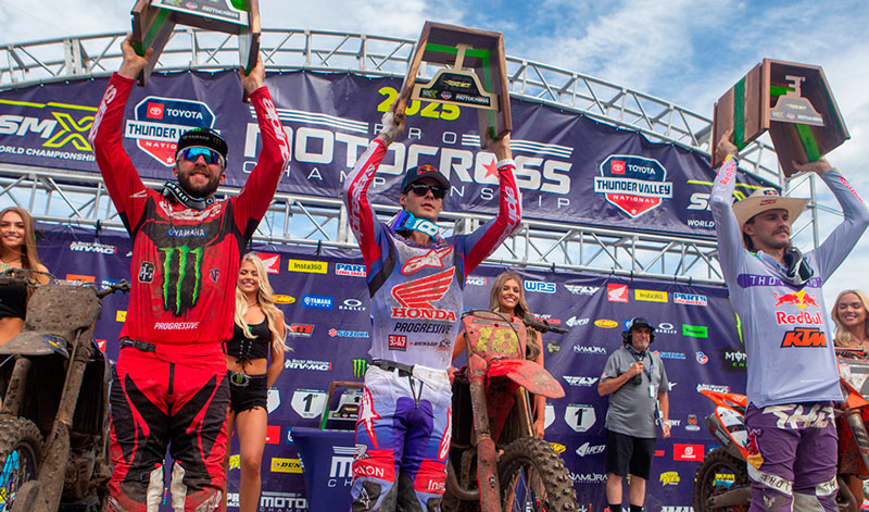 Eli Tomac cruzó la meta en tercer lugar tras mantenerse en la pelea durante toda la carrera. Luchó con Hunter Lawrence durante la primera mitad de la manga y luego recuperó la posición cuando Lawrence se cayó, saliendo tercero, en la última vuelta.