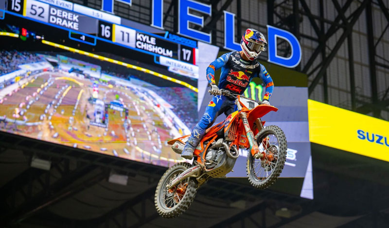 “Es bueno tener la placa roja, pero en realidad sólo importa… quién termina con ella. Así que es bueno recuperarlo, todos estamos bastante cerca en puntos, pero creo que esta noche fue uno de mis mejores paseos con la nueva bicicleta. Hemos tenido muchas carreras de barro, la semana pasada fue una Triple Corona, y esta semana fue nuestro primer evento principal real [desde la primera ronda], y me sentí bastante sólido en las condiciones. No tuve una gran carrera de serie y después de ver la salida de 250, estaba bastante lejos [en mi puerta]; Estaba un poco nervioso porque si no hacía un buen salto me sacarían de la pista. Así que tuve una buena salida y tuve buena velocidad, obviamente cometí algunos errores, pero fue un buen evento principal y estoy ansioso por aprovecharlo”. – Chase Sexton