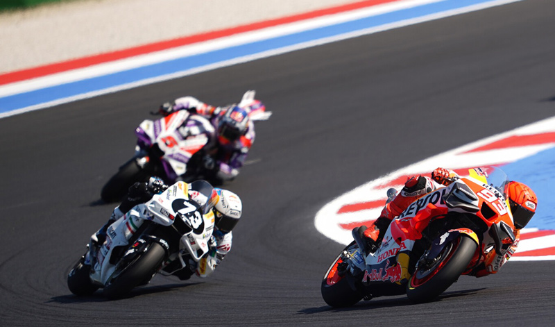 Teníamos muchas carreras sin ver a Márquez tener una carrera digna de un piloto como el, en esta ocasión el piloto apostó por usar un neumático blando y le saco el máximo provecho, terminado en la séptima posición después de una batalla con Luca Marini y Raúl Fernández.