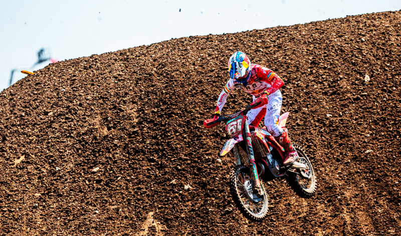 El español ha conseguido la victoria en seis ocasiones esta temporada, y lo volvió a hacer el pasado sábado, así como también las mangas del domingo. Aunque no logró el holeshot en la primera manga, estuvo pegado a sus rivales para, en el momento justo, dar el golpe de gracia en los últimos tramos de la primera carrera del domingo. La segunda manga siguió un guion parecido, ya que Prado estuvo muy paciente en segunda posición y volvió a hacerse con la primera plaza a pocas vueltas del final. Fue un claro dominio del piloto de GasGas, el cual ya extiende su ventaja a 67 puntos en la clasificación general de MXGP.