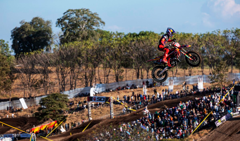 Jorge Prado, tiene muy claro su objetivo, este fin de semana demostró su rumbo hacia la victoria. Después de su incontestable victoria en Alemania y de la lesión de Herlings, Prado llegaba al doblete de Grandes Premios en Indonesia con 67 puntos de ventaja sobre el holandés, cuya baja en ambas citas tras haberse roto una vértebra en su caída en Teutschenthal. Así las cosas, el piloto español cuenta con una gran opción para dar un zarpazo más al campeonato, y de momento lo está aprovechando.