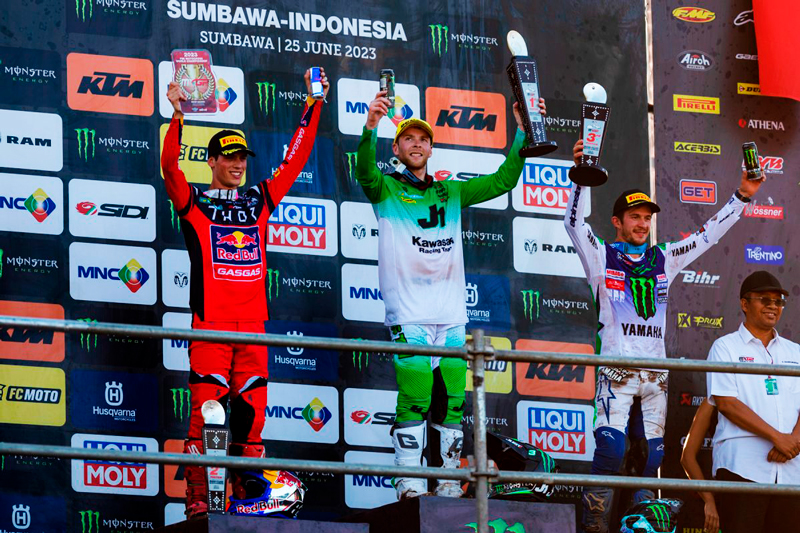 Victoria dominante del piloto de Kawasaki, que se escapó de principio a fin. Segunda posición en la segunda manga para Jeremy Seewer y nuevo podio de Jorge Prado. Otra gran actuación de Rubén Fernández en esta segunda manga de Indonesia, acabando en sexta posición, justo por detrás de los pilotos de Yamaha Calvin Vlaanderen y Glenn Coldenhoff. De esta forma, la victoria del MXGP fue para Romain Febvre, por delante de un Jorge Prado que vuelve a subirse al podio final y con el que afianza su resultado, además de tener un nuevo rival para el campeonato. El tercer cajón de la cita lo completó el piloto de Yamaha Jeremy Seewer.