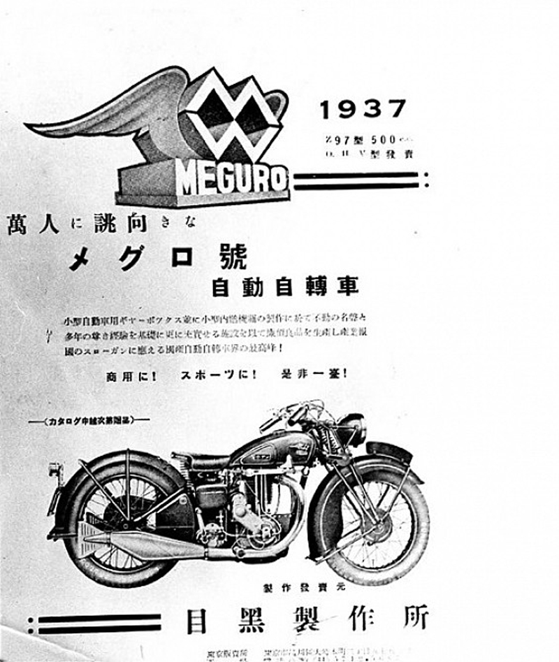 Meguro es uno de los primeros fabricantes de motocicletas de Japón, y por muchos años han permanecidos dormidos. Estas motocicletas fueron construidas por Meguro Manufacturing Co., fundada por Hobuji Murato y Takaji Suzukiu (un oficial naval de alto rango) en 1937. Fue una de las primeras compañías japonesas de motocicletas, y aunque después se convirtió en socio de Kawasaki Heavy Industries Ltd, finalmente fue absorbida.