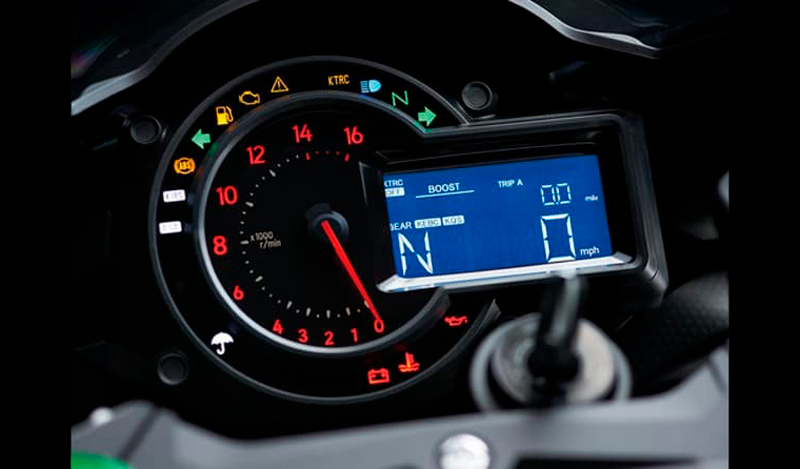 El S-KTRC supervisa diversos parámetros, incluida la velocidad de las ruedas delantera y trasera, las rpm del motor y la posición del acelerador. Las condiciones se confirman cada 5 milisegundos: el sistema controla cada uno de los parámetros y determina cuánto han variado (es decir, la tasa de variación). Este método exclusivo de Kawasaki permite interpolar y predecir cómo se comportará la motocicleta en el instante siguiente.