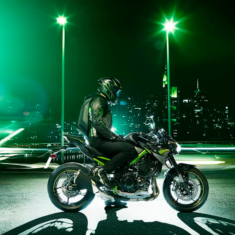 Equipada con componentes electrónicos de excelentes prestaciones, en la Z900 ABS la potencia va de la mano con los últimos avances en tecnología motociclística.