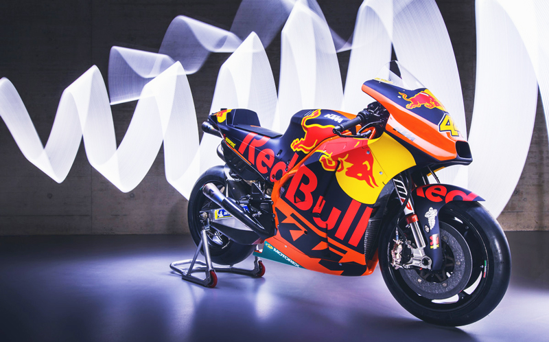 Los nuevos modelos para MotoGP por parte de KTM han salido a la luz, cuatro modelos para los dos equipos que representarán a la marca en el próximo serial. Basta sólo con mirar las fotografías de los prototipos para enamorarse de cada uno de los detalles que las conforman. El diseño y color de estas unidades está inspirado en la estratégica alianza que la firma de motocicletas hizo con la marca de bebidas energizantes Red Bull, con quien tiene ya un tiempo compartiendo ideas y sumando victorias obtenidas por los pilotos que orgullosamente los representan en las imponentes pistas y campeonatos mundiales.