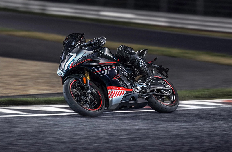 La CFMoto 450SR ofrece una imagen ultradeportiva, desarrollada entorno a componentes sencillos, pero seguro efectivos, y un motor bicilíndrico en paralelo de 449 c.c. con refrigeración líquida capaz de alcanzar los 50 CV de potencia máxima a 9.500 rpm. Recordemos que dispone de doble árbol de levas, 8 válvulas y cigüeñal calado a 270º.