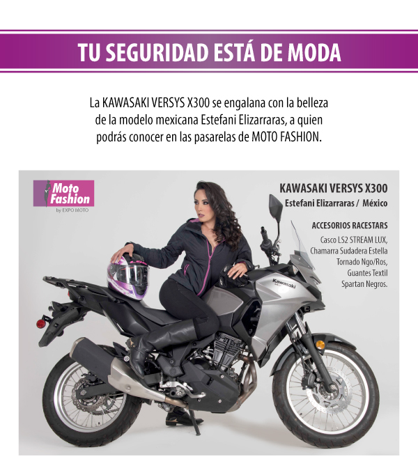 La KAWASAKI VERSYS X300 se engalana con la belleza de la modelo mexicana Estefani Elizarraras