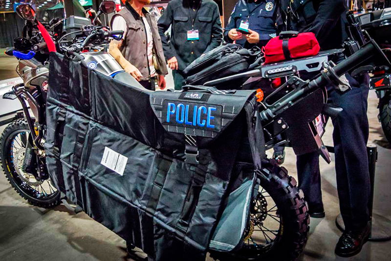 Entre los accesorios que se agregaron a las motocicletas están las inestimables luces y sirenas, un fusil HBH AR-15 con su soporte correspondiente, una manta lateral de Kevlar que hace de antibalas, una cámara, y para finalizar, dos maletas laterales.
