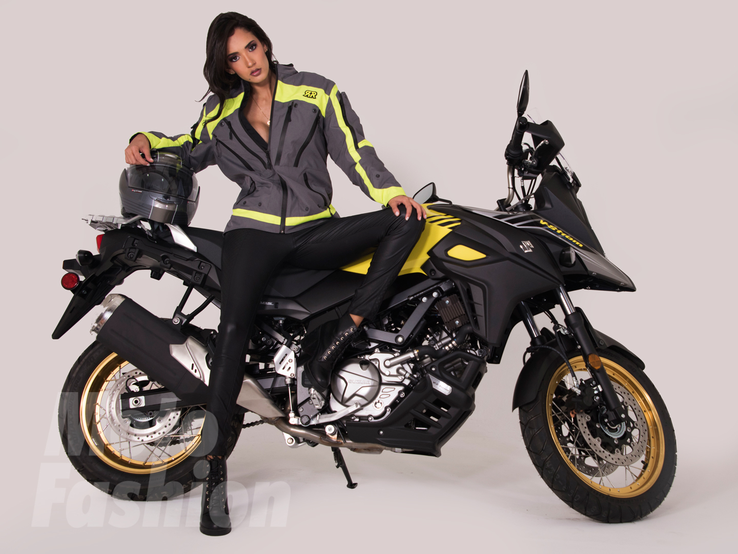 Para su sesión fotográfica Daniela utilizó una chamarra Kras gris verde, pantalón Ara pant y un casco Zeus girls, artículos que puedes conseguir en Miguel Caballero, en su dirección de la Ciudad de México, o también los podrás encontrar en Expo Moto, del 22 al 25 de noviembre en el WTC México.