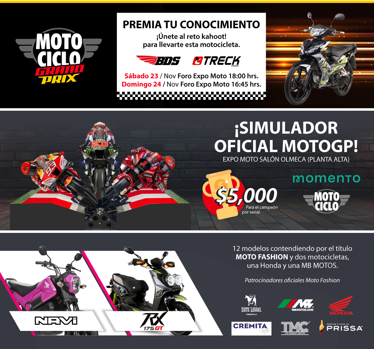 2016-05-28: Este correo electrónico y, en su caso, cualquier fichero anexo, contiene información exclusivamente dirigida a su destinatario. En caso de haber recibido este correo electrónico por error, se ruega notifíquese inmediatamente esta circunstancia a info@expomotonews.com Al mismo tiempo EXPO MOTO le recuerda que sus datos forman o formarán parte de un fichero registrado, propiedad de la EXPO MOTO. Usted tiene derecho de acceso, oposición, rectificación y cancelación a estos datos que deberá ejercer mediante escrito a la dirección anteriormente citada.Expo Moto es una marca registrada. Los logotipos de patrocinadores fueron proporcionados por la misma marca. Queda prohibido el uso de las imágenes difundidas en este correo. © 2013 EXPO MOTO Todos los derechos reservados.