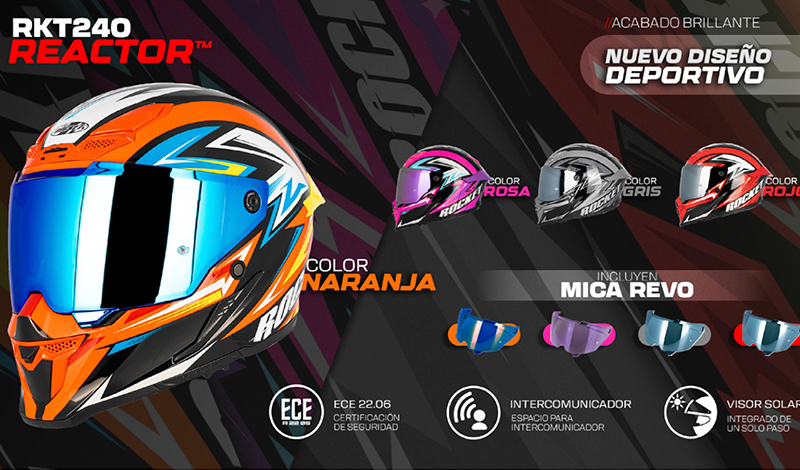RKT240 Reactor™: gráficos deportivos, combinaciones vivas y una presencia dinámica que grita velocidad. Es el casco para quien quiere verse agresivo sin perder versatilidad de uso diario.