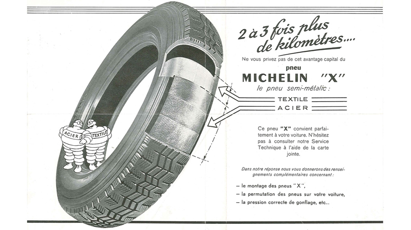 En 1934 Michelin introdujo el run-flat-tyre, un neumático que, si se pinchaba, podía seguir rodando gracias a un revestimiento especial de espuma. Pero su gran aportación a la historia tuvo lugar en 1946, cuando Michelin desarrolló y patentó el neumático radial, lo que hizo que la marca francesa se convirtiera en uno de los principales fabricantes de neumáticos en todo el mundo. El radial se comercializó inicialmente como la llanta “X”.