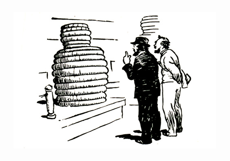 En 1894 la empresa estuvo presente en la Exposición Universal y Colonial de Lyon, en Francia. Allí los hermanos colocaron una pila de neumáticos en la entrada de su stand para atraer al público. Después de observarla por varias horas Édouard le comentó a su hermano que sólo necesitaba brazos para parecer un ser humano.