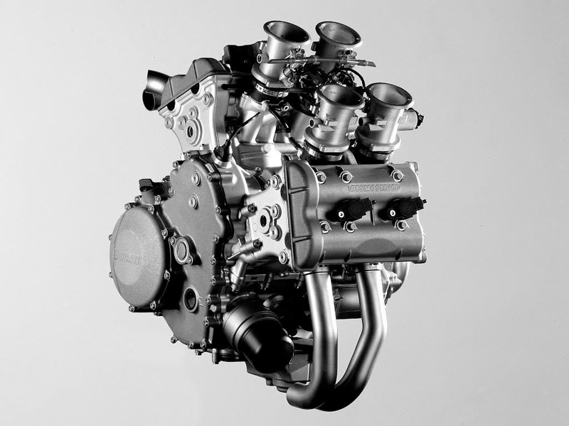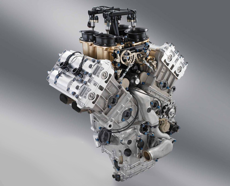 Particularmente, la Ducati Desmosedici GP es la única que cuenta con un motor V4 de 90º con una distribución desmodrómica con doble árbol de levas en cabeza y cuatro válvulas por cilindro.