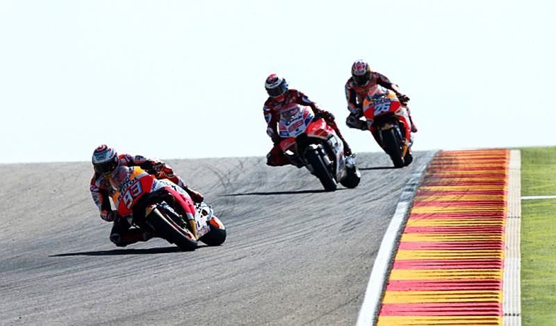 Un triunfo para los españoles con un podio completamente español, primero el gran Marc Márquez hizo la carrera suya seguido por Dani Pedrosa quien ha terminado en segundo, Jorge Lorenzo resurgió de las cenizas en Aragón al liderar casi la mitad de carrera pero al final tuvo unas cuantas complicaciones que lo mandaron al tercer puesto.