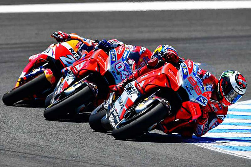 Márquez rodaba cómodamente y tenía la necesidad de adelantar a Lorenzo, pero a falta de 17 vueltas Márquez tomo una decisión que lo llevaría al triunfo o al fracaso pero el piloto de Honda ya está acostumbrado a ganar y así fue como adelanto y se formó un cuarteto de las dos Hondas oficiales contra las dos Ducati oficiales.