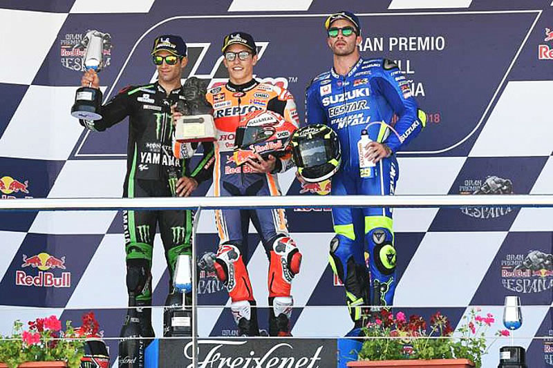 Por su parte Alex Rins ya iba en la quinta posición pero volvió a terminar en el suelo por tercera vez de las cuatro carreras que lleva la temporada. Crutchlow que rodaba en cuarto también finalizó en el suelo.