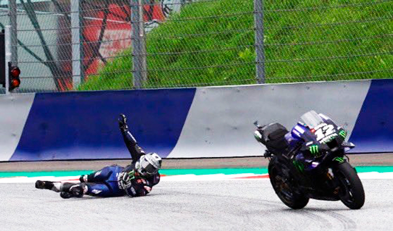 Nos percatamos de que Dovizioso no encontraba el ritmo de la carrera, por lo que no se pudo colocar en los tres primeros lugares. A catorce vueltas de que concluyera la carrera, que al parecer sería la primera carrera “tranquila” de toda la temporada 2020, pasó lo que nadie esperaba: Maverick Viñales se cayó a final de la recta. Al parecer el piloto se había quedado sin freno y tuvo que saltar de su motocicleta, dejando que su Yamaha se estampara contra el muro donde se incendió.