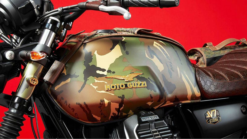 La marca de moto asegura haber creado “algo inesperado en el mundo de las dos ruedas”. La decoración del depósito estilo camuflaje es un detalle inspirado en el lenguaje estético de Palace. Mientras que en el tapizado del asiento se pueden ver las típicas GG en relieve, el icónico símbolo de Gucci. En las alforjas se funden los dos diseños: el patrón de camuflaje y las siglas de la casa de moda italiana.