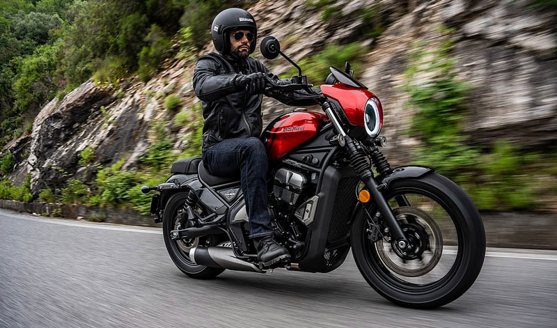 Diseñada por el Italian Style Center en Trivolzio, la Calibro se ofrece en dos configuraciones: la estándar y la bagger. La versión bagger incluye maletas laterales rígidas de 19 litros y un carenado Batwing de serie, mientras que ambos modelos comparten un depósito metálico de combustible de 15 litros y faros full LED con una firma luminosa distintiva.