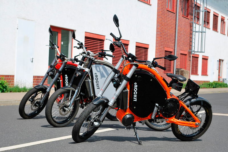 La eRockit fue fabricada por parte de una empresa alemana, al verla a simple vista podemos percatarnos de aparentemente es una motocicleta, pero con un par de pedales a sus costados, que, aunque sus prestaciones son puramente las de una motocicleta, los pedales nos hacen confundirnos un poco.