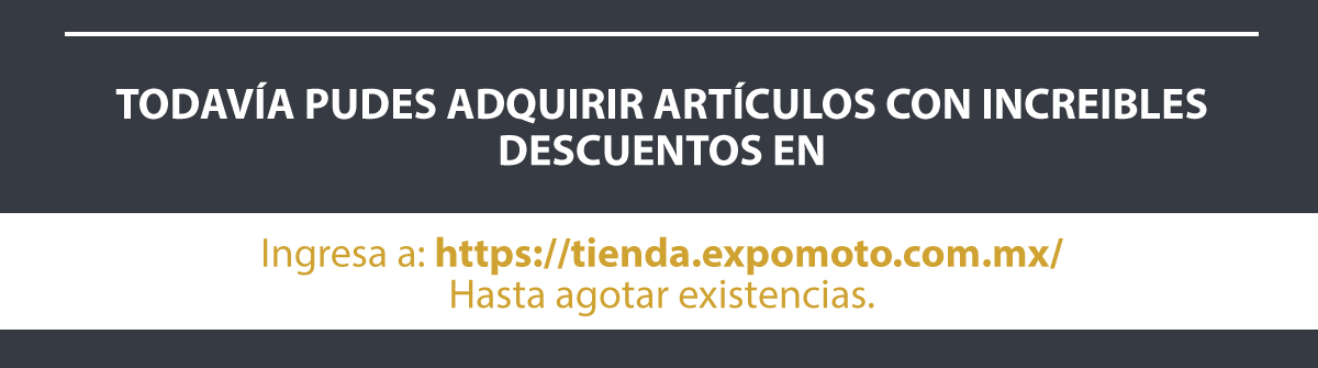 2016-05-28: Este correo electrónico y, en su caso, cualquier fichero anexo, contiene información exclusivamente dirigida a su destinatario. En caso de haber recibido este correo electrónico por error, se ruega notifíquese inmediatamente esta circunstancia a info@expomotonews.com Al mismo tiempo EXPO MOTO le recuerda que sus datos forman o formarán parte de un fichero registrado, propiedad de la EXPO MOTO. Usted tiene derecho de acceso, oposición, rectificación y cancelación a estos datos que deberá ejercer mediante escrito a la dirección anteriormente citada.Expo Moto es una marca registrada. Los logotipos de patrocinadores fueron proporcionados por la misma marca. Queda prohibido el uso de las imágenes difundidas en este correo. © 2013 EXPO MOTO Todos los derechos reservados.