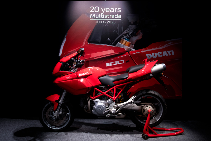 Para celebrar el vigésimo aniversario del modelo que cambió la historia de Ducati, se ha creado en el Museo Ducati una exposición temporal titulada “Multistrada 20th – Veinte años de Exploración Evolutiva”. Esta exhibición permite a los entusiastas interactuar estrechamente con dos modelos icónicos del linaje Multistrada: la Multistrada 1000 DS original, que encarna la visión fundacional, y la Multistrada V4 Rally contemporánea, un testimonio de su viaje de innovación durante las últimas dos décadas.