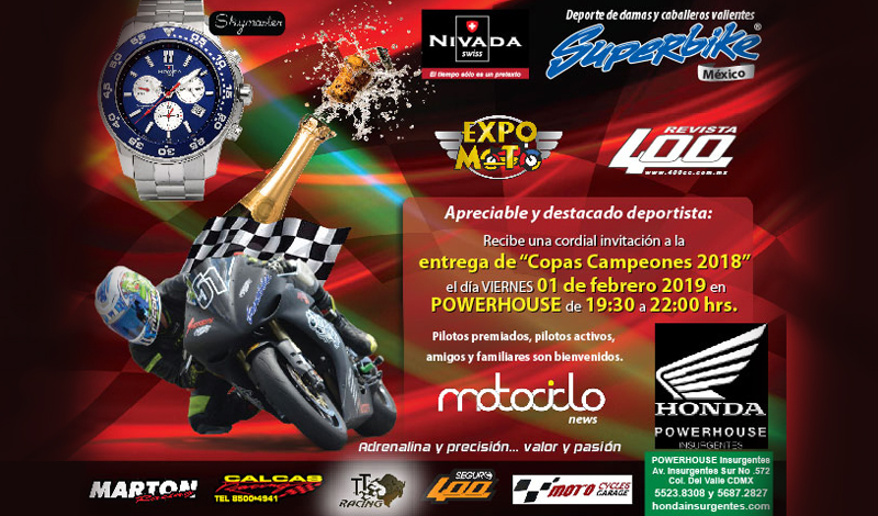 La entrega de copas se realizará el día primero de febrero en POWER HOUSE en un horario de 19:30 a 22:00 hrs.