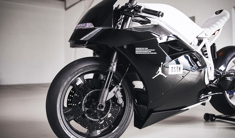 Fusión, diseño y sublimes curvas para conmemorar a las zapatillas deportivas Nike Air Jordan XI Concord, plasmadas en una Ducati 916.
