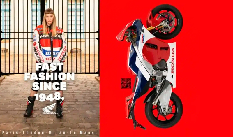 Con motivo del glamouroso evento parisino, la marca japonesa creó su propia pasarela con el diseño de unos carteles publicitarios bajo el lema "París-Londres-Milán-Le Mans".