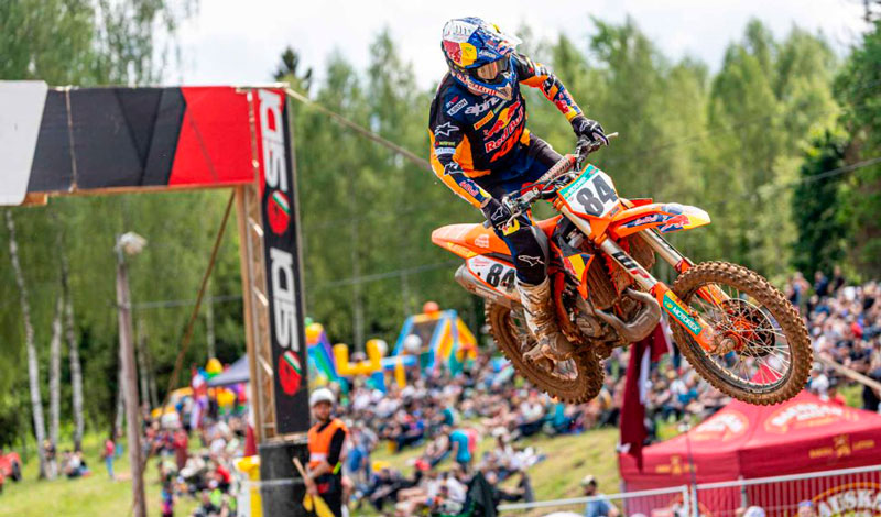 Jeffrey Herlings se lleva una victoria perfecta. En el podio lo acompañaron Lucas Coenen y Romain Febvre, quien salvó el día con una sólida segunda manga.