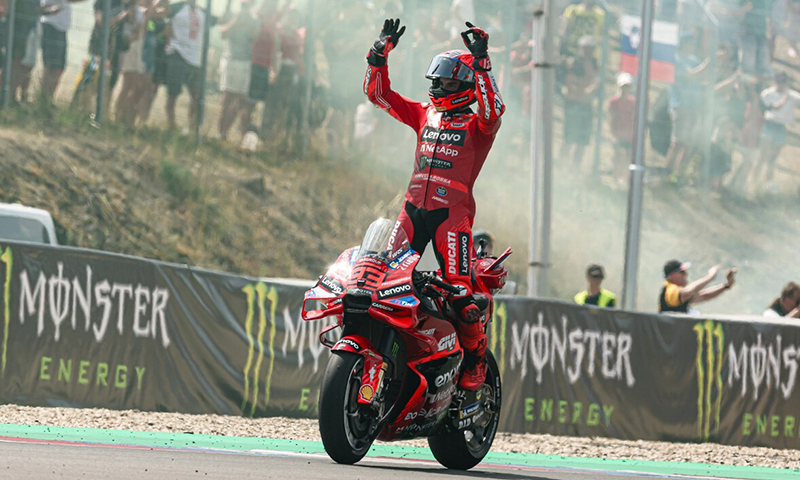 Triunfo para Márquez en Brno que reescribe una parte de la historia de Ducati al ser el primer piloto de la casa de Bolonia en ganar cinco Grandes Premios consecutivos. Segundo puesto para Bezzecchi de Aprilia y el tercer lugar se lo llevó Acosta con KTM.