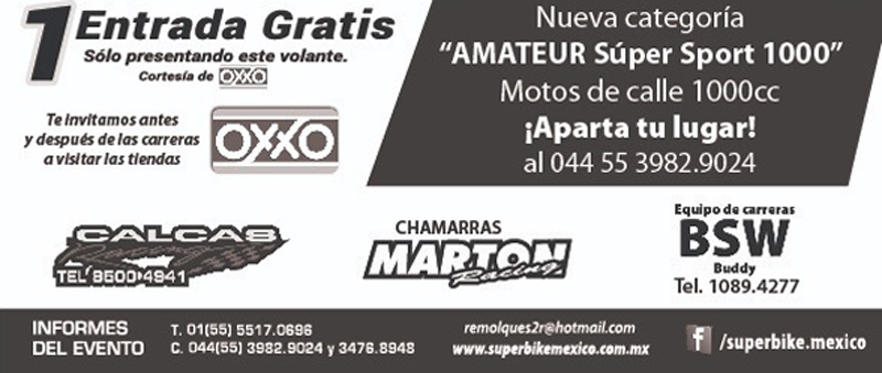 Emilio Trejo (Atitalaquia) anunció que arrancará con una singular moto MV Agusta de cepa italiana que, sumada a la Ducati V4 que presentó el equipo Tribu Tatanka en el evento anterior, deja huella y récord del debut en el Superbike de motocicletas de alto rango. Carlos Galaviz (Galaviz Service), haciendo gala de sus habilidades mecánicas, estará en la línea de partida para intentar destronar a los punteros Fernando Vidal (Terror Team) y Scott Nájera (Dino Performance).