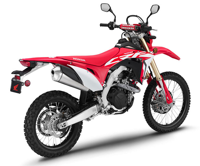 Por último hablaremos del nuevo modelo de Honda, la CRF450L. Es una moto estilo trail que fue construida para aprovechar todo el agarre disponible. Es propulsada por un motor que emite una potencia contundente, y puede usarse en la vía pública así como en el campo.