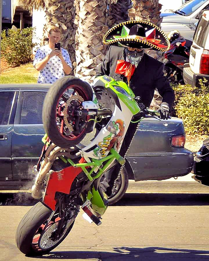 Inicio en la acrobacia: a los 18 años en una Honda F2 conoce al Miguelon (Campeón Nacional de Acrobacia Extrema en ese momento) con él y con una motocicleta Honda F4i prestada, acompañado de su hermano Francisco Abraham y el Miguelon, inicia su entrenamiento para presentarse en el primer escenario Expo Moto 2007 ahí llega no ganando pero innovó, invento un truco llamado “LA MACHINCUEPA” con ello se trajo la mejor puntuación del día. Se presenta en Sala de Armas se gana su primer lugar en una competencia, todo este año su entrenamiento fue enfocado única y exclusivamente para ganar el siguiente año. Cuando llega a Expo Moto 2008 gana su primer campeonato.