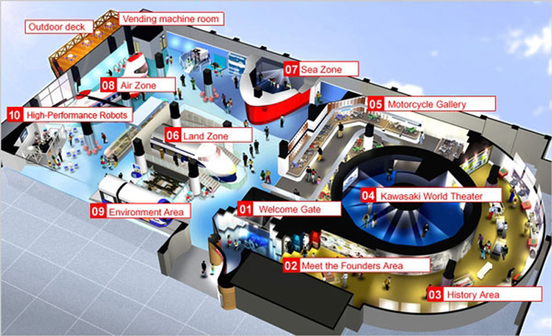 Kawasaki Good Times World. Dentro del Museo Marítimo de Kobe, en el puerto del mismo nombre, se encuentra el museo corporativo de Kawasaki Heavy Industries Group, que cuenta con más de 100 años de historia.