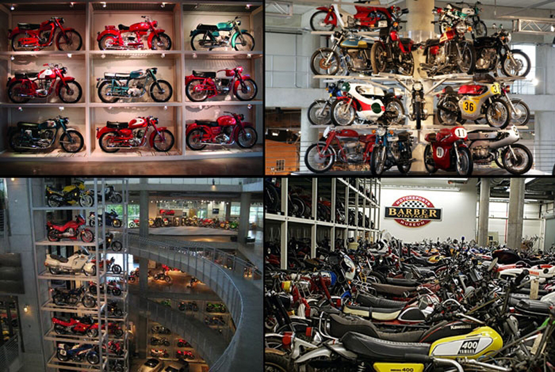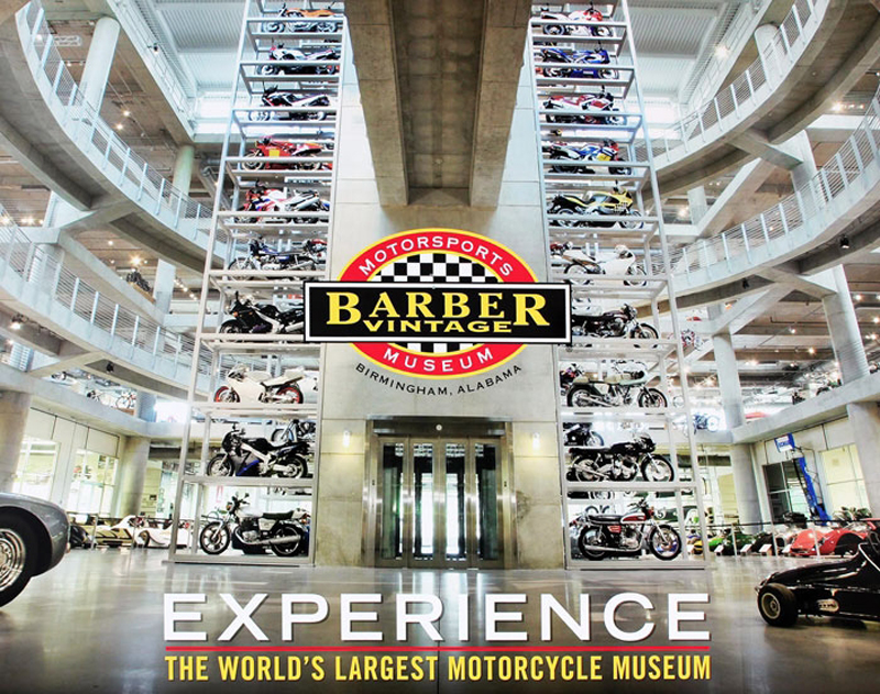 Con la visión de poseer la mejor y más grande colección de motos en el mundo, el expiloto de carreras y empresario George Barber comenzó en 1988 coleccionando coches, pero posteriormente también comenzó a restaurar y coleccionar motocicletas. El Barber Vintage Motorsports Museum posee el récord Guinness de la colección más grande de motos en el mundo, y está albergado en un edificio de cinco plantas, junto a un circuito de velocidad de 3.8 kilómetros de longitud.