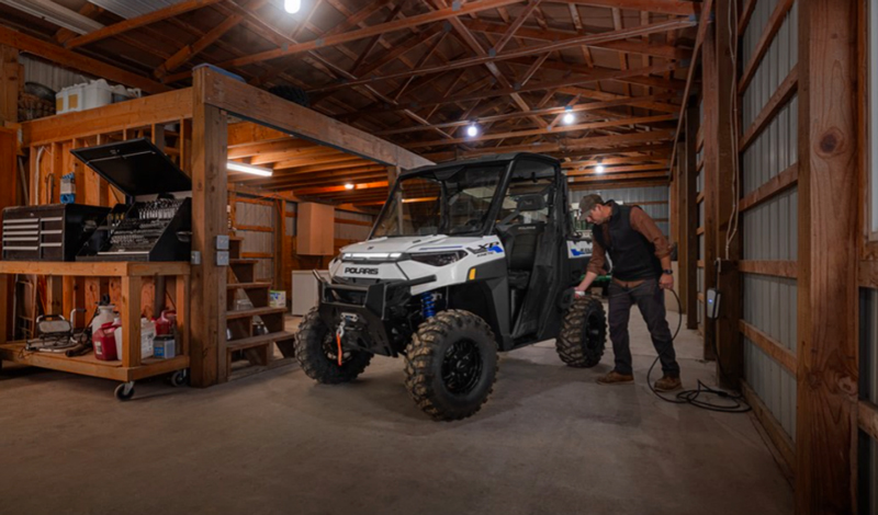 Las opciones de carga están diseñadas para adaptarse a las necesidades específicas del cliente y son tan fáciles como conectarlas a una toma de corriente de pared estándar. Ya sea que se requiera una carga durante la noche o una carga rápida durante la hora del almuerzo, Polaris los tiene cubiertos. RANGER XP Kinetic viene de fábrica con un cable de carga EV combinado de Nivel 1/Nivel 2 que permite a los usuarios cargar desde una toma de corriente de 120V o 240V. La tasa de carga a bordo instalada de fábrica es de 3 kW para la versión Premium y de 6 kW para la versión Ultimate. Ambos pueden alcanzar la carga completa desde 0% en tan solo 5 horas.