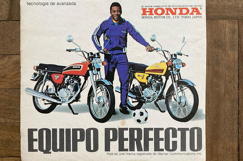 El magnate japonés fue quien, de manera personal, eligió a Pelé para que fuera el embajador de la Honda CG 125. Una moto sencilla y asequible que tuvo un enorme éxito, en especial en los países en vías de desarrollo, pero que se vendió bien en la mayoría de los mercados donde estuvo presente.