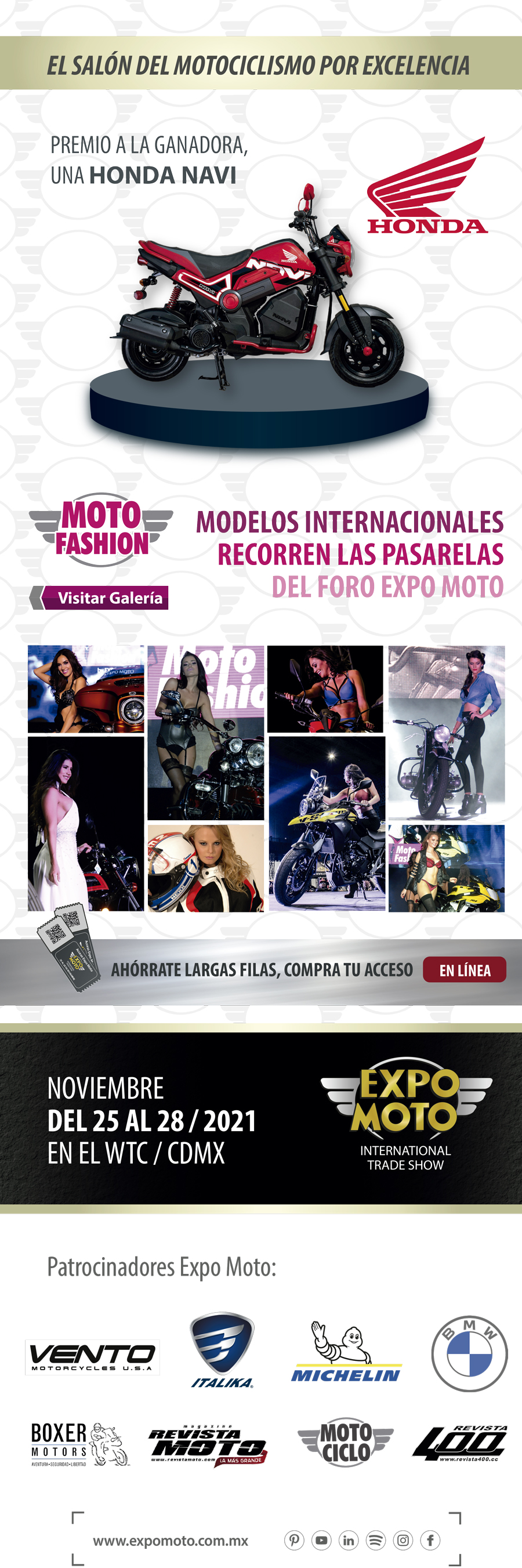 2016-05-28: Este correo electrónico y, en su caso, cualquier fichero anexo, contiene información exclusivamente dirigida a su destinatario. En caso de haber recibido este correo electrónico por error, se ruega notifíquese inmediatamente esta circunstancia a info@expomotonews.com Al mismo tiempo EXPO MOTO le recuerda que sus datos forman o formarán parte de un fichero registrado, propiedad de la EXPO MOTO. Usted tiene derecho de acceso, oposición, rectificación y cancelación a estos datos que deberá ejercer mediante escrito a la dirección anteriormente citada.Expo Moto es una marca registrada. Los logotipos de patrocinadores fueron proporcionados por la misma marca. Queda prohibido el uso de las imágenes difundidas en este correo. © 2013 EXPO MOTO Todos los derechos reservados.